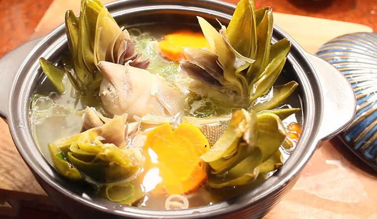 Atiso có thể dùng dưới dạng nấu canh, hầm giò heo hoặc uống trà, nhưng không nên lạm dụng quá nhiều trong ngày.
