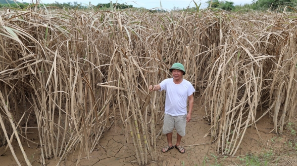Hàng chục hộ dân trồng mía tại xã Thành Vinh, Thanh Hóa trở nên trắng tay sau khi cơn bão Bualoi đổ bộ gây mưa lớn làm ngập lụt hơn 400 ha mía chuẩn bị đến kỳ thu hoạch.