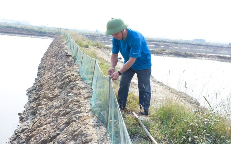 Làm rào chắn xung quanh ao thật kỹ để tránh địch hại và cua bị thất thoát. Ảnh: Báo Nghệ An