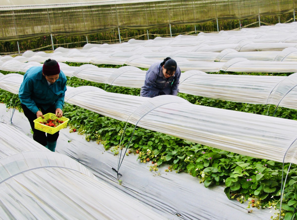 | Vườn dâu tây của Hợp tác xã Nông nghiệp Trường Anh, xã Hưng Đạo, thành phố Cao Bằng. Ảnh Quốc Sơn. |
