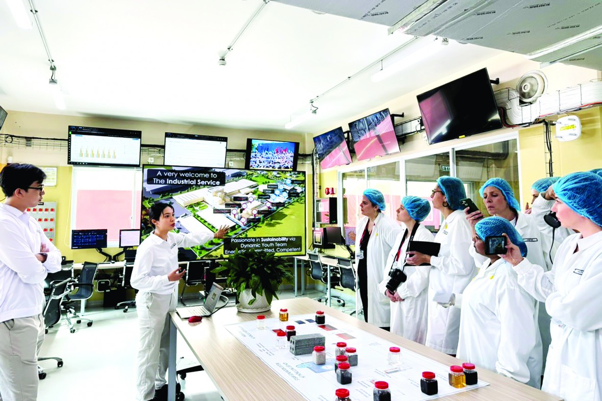 | Đoàn phóng viên quốc tế tìm hiểu về mô hình kinh tế tuần hoàn “từ hạt cà phê đến viên gạch không nung” tại nhà máy Nestlé Trị An, tỉnh Đồng Nai. |